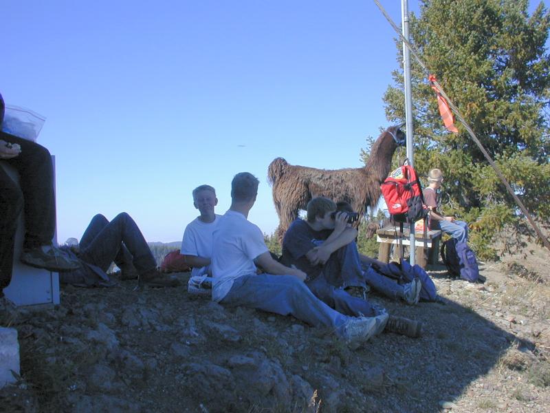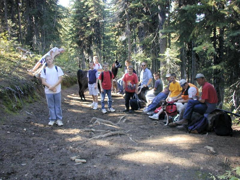 Troop 152 headed up the Mt. Misery Trail from TeePee to Oregon Butte in September 2004 for a day hike, following an overnight camp at Godman Springs in the Blue Mountains of Washington. The group is ready to make the climb.