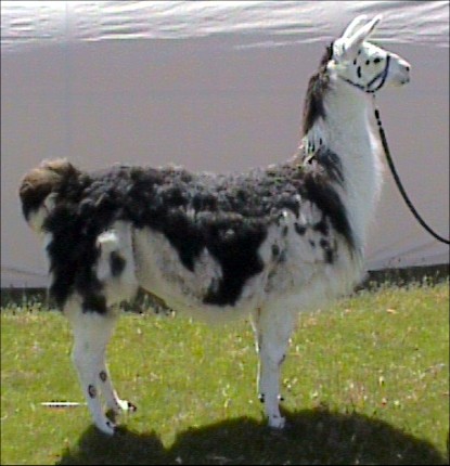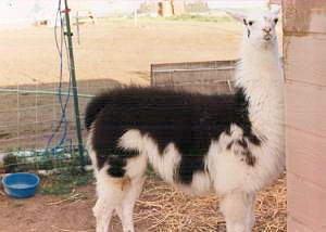 | Dazy is the matriarch of the herd. Although "Granny-May" is the oldest (DOB May 1, 1990), and small in stature, she rules the roost! She seems to be the most clever of the bunch, which she employs to maintain her status, no doubt. At the same time, she is patient and takes great care to teach cria's in the herd the finer points of llama ettiquette. A granddaughter of the well-known Dr. Doolittle, though you wouldn't know it by looking at her. She's low maintenance -- short to medium length classic coat and she did not inherit Dr. Doolittle's toenails. They've never needed trimming. Registered with the International Llama Registry, 94485.