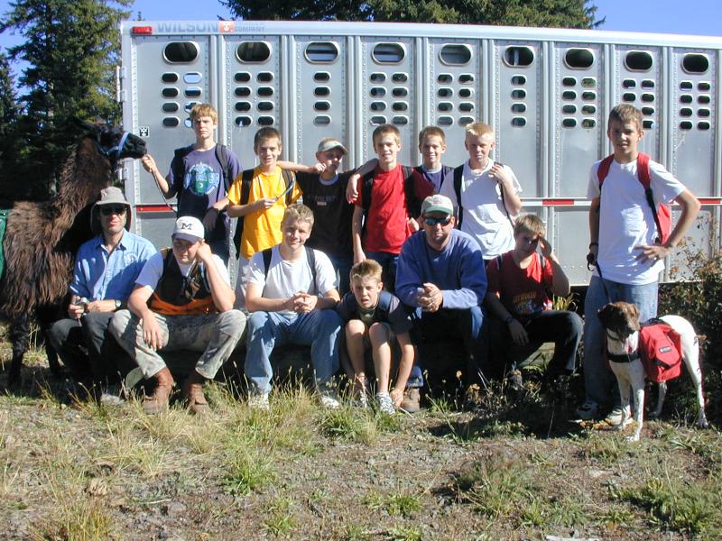 Troop 152 headed up the Mt. Misery Trail from TeePee to Oregon Butte in September 2004 for a day hike, following an overnight camp at Godman Springs in the Blue Mountains of Washington. The group is ready to make the climb.
