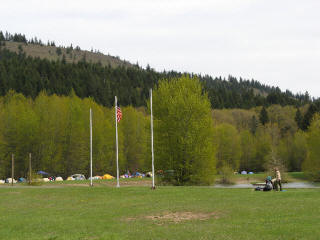 Located 75 mi. SE of Seattle and 7 mi. W of Cle Elum. Take Exit 78 off I-90 to Golf Course Road, Turn North. Turn West (Left) at the “T” onto Hundley Road. You will parallel the Freeway as you drive to the end of the road, which will take you right into Ensign Ranch, address 3551 Hundley Rd. The office is straight ahead under the US Flag. The Yakima campground is beyond the office on the right (see map).