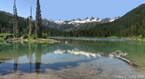 Some participants are packing in to nearby Pete Lake after rendezvous. The trailhead at Cooper Lake is a short drive (less than an hour and all paved except for the last mile or two of gravel/dirt) from the Rendezvous location (via Roslyn) and is an easy five mile hike to Pete Lake, elevation 3000'. The plan is to set up base camp here and day hike to various sites nearby (more strenuous terrain), some on the Pacific Crest Trail, or the more adventurous may pack in farther. Hikes to Escondido and Spectacle lakes are planned. The very scenic Waptus Pass loop and lookout station is a good hike for the very hardy. This trip is intended for experienced/equipped packers, but backpackers interested in seeing what llama packing is all about are very welcome to join in.