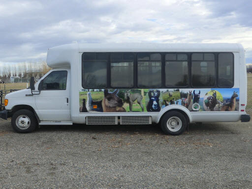 Our newer primary means of transport is a 2007 Ford E450 Transit Bus. We modified it to accommodate llamas. The vehicle has a 6.0L PowerStroke diesel. Heavy duty A/C & heat, luggage shelving, two tables, refrigerator/freezer, and the rubberized floor was covered in foam padding and woven jute mat, all for llama comfort. It will carry twelve people and four llamas in typical configuration (seats can be added or removed). Our older primary means of transport is a 1989 Ford E350 Van, originally customized by Lewis into a passenger bus. We modified it to accommodate travel with llamas. The vehicle has a new 460CI (7.5L) engine. We added rear A/C & heat, luggage shelving, table, and the rubberized floor was covered in foam padding and woven mat, all for llama comfort. It will carry seven people and up to four llamas in typical configuration, or three llamas and ten people (seats can be added or removed). More llamas can travel in the ATV camp trailer.